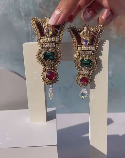 Wearing handcrafted Historical Crown earrings symbolizes a connection to history and the crown represents power, authority, and regal elegance.