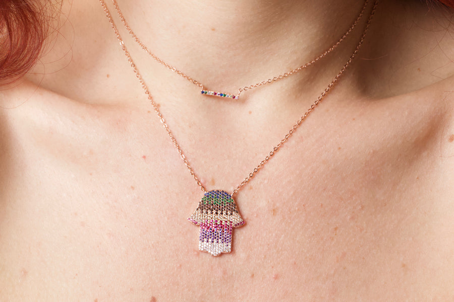 The Hamsa Hand is an ancient Middle Eastern amulet symbolizing the Hand of God. In all faiths it is a protective sign. It brings its owner happiness, luck, health, and good fortune. The hamsa hand has a wide variety of different spellings which includes hamesh, hamsa, chamsa, and khamsa.