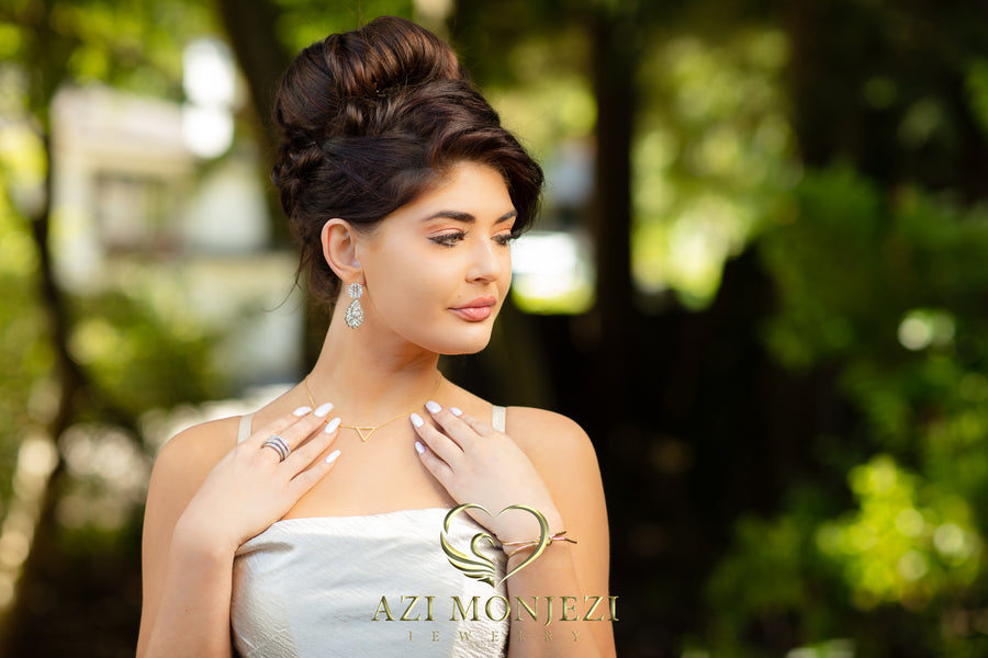 Includes: Revel statement earrings, a dainty yellow gold necklace ( as seen above) and the Borealis statement ring.