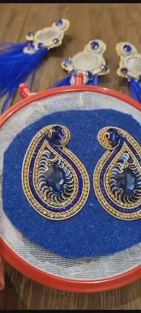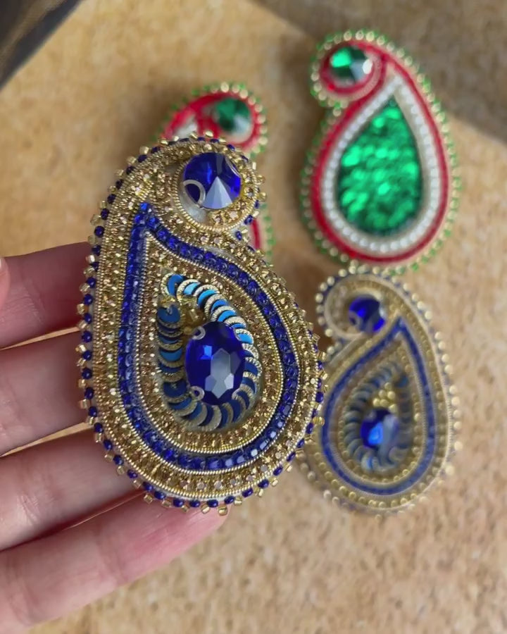 ????? ????? ??? ????? Made of beads, fabric & crystals? Very light weight? Durable? Strong Material? Sustainable Material? Silver Butterfly Backs? Vegan Pleather Used For Behind The Jewels? Vegan? Handle with care? Handmade with love ??